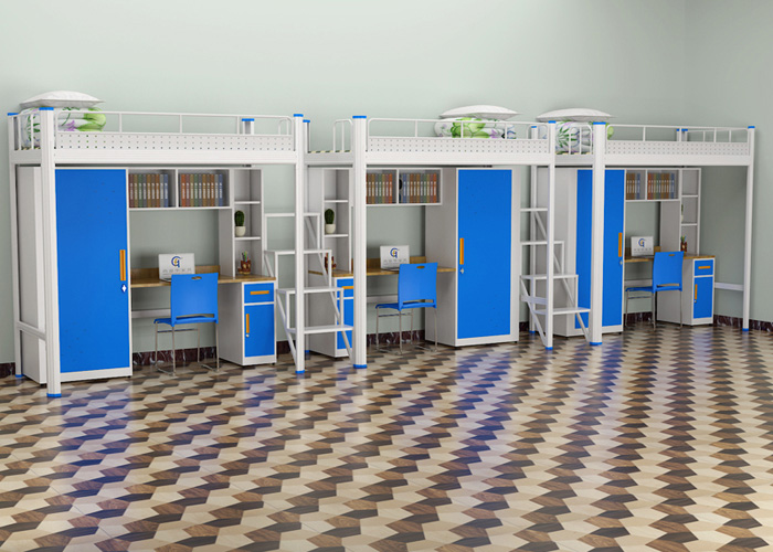 廣東高華家具宿舍公寓床廠家的這款宿舍連體公寓床,不僅僅可以節省宿舍有限的空間而且還促使宿舍空間的利用率得到合理使用和更好的管理宿舍的環境衛生。