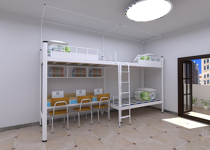 廣東高華家具宿舍床廠家的宿舍雙層鐵床-GH-G-086款式新穎,功能實用,采用環保0甲醛烤漆,無論悶熱潮濕都恍然如新。 工藝設計上,采用先進的卡口式連接,這種連接的優點在于承重性強,穩固性好,上下床時非常平穩,不易搖晃,安全舒適,整張床可承重500公斤,經久耐用且十年質保,可以適應各類宿舍。